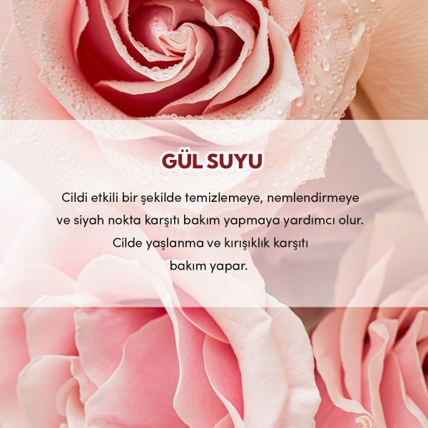 Tam mevsiminde toplanan gül yapraklarından, geleneksel yöntemlerle ve gül yağı ayrıştırılmadan elde edilir. Cilde ferahlık ve nem kazandırır, kuruluğa karşı bakım sağlar. Tüm cilt tiplerine uygundur.