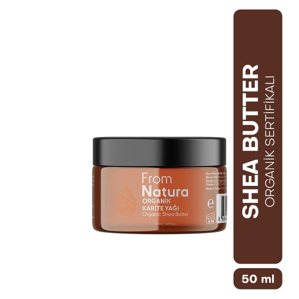 From Natura organik sertifikalı Shea Butter (Karite yağı), %100 saf Shea bitkisi meyvelerinden soğuk sıkım yöntemiyle elde edilmiştir. E, A ve F vitaminleri açısında zengindir.