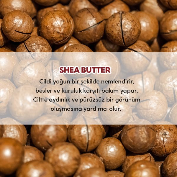 Shea bitkisinden elde edilen doğal ve yoğun nemlendirici bir bakım ürünüdür. İçeriğindeki A, E ve F vitaminleri sayesinde cildi besler, nemlendirir ve güçlendirir. Cildin nem dengesini korumaya yardımcı olurken, kuruluk kaynaklı çatlak görünümünün azalmasına yardımcı olur.