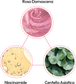 Cildi hyaluronik asit ve gül suyu ile nemlendirir, tazeler. Niasinamid ve Cica ile cilt tonunu eşitlemeye ve cildin aydınlanmasına yardımcı olur.
