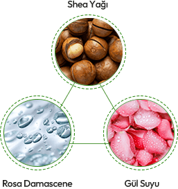 Hyaluronik Asit: Ciltteki nemi hapsederek dolgunluk ve yumuşaklık sağlar. Shea Yağı: Yoğun besleyici yapısıyla cildi güçlendirir, kuruluğu giderir, ipeksi bir his bırakır. Papatya Ekstresi: Cilde ferahlık hissi verir.